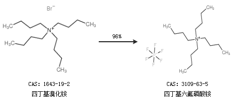 1.通過四丁基溴化銨合成四丁基六氟磷酸銨,收率約96%;