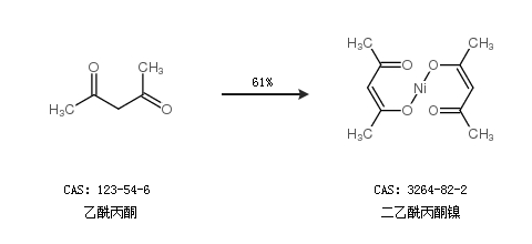 1.通過乙酰丙酮合成二乙酰丙酮鎳,收率約61%;