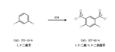 1.通過1,3-二氟苯合成1,5-二氟-2,4-二硝基苯,收率約83%;