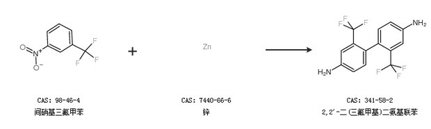 1.通過(guò)間硝基三氟甲苯和鋅合成2,2''-二(三氟甲基)二氨基聯(lián)苯