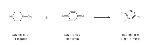 1.通過N-甲基哌嗪和順丁烯二酸合成4-溴-1,2-二氟苯