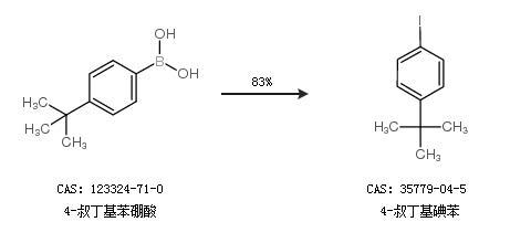 1.通過4-叔丁基苯硼酸合成4-叔丁基碘苯,收率約83%;