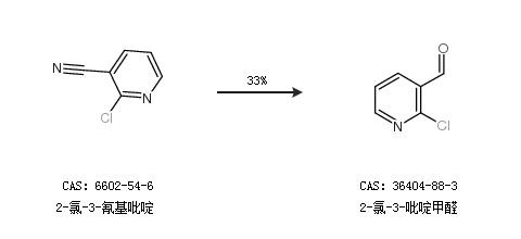 2.通過2-氯-3-氰基吡啶合成2-氯-3-吡啶甲醛,收率約33%;