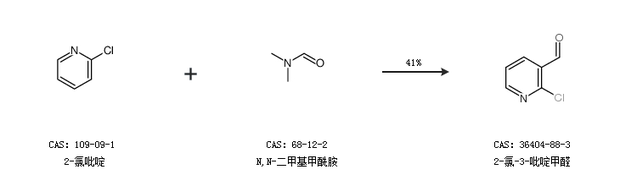 1.通過2-氯吡啶和N,N-二甲基甲酰胺合成2-氯-3-吡啶甲醛,收率約41%;