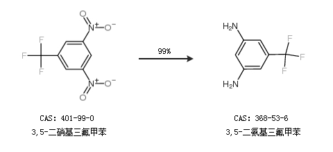 1.通過(guò)3,5-二硝基三氟甲苯合成3,5-二氨基三氟甲苯,收率約99%;