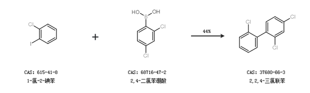 1.通過1-氯-2-碘苯和2,4-二氯苯硼酸合成2,2,4-三氯聯(lián)苯,收率約44%;