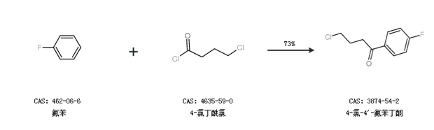 2.通過(guò)氟苯和4-氯丁酰氯合成4-氯-4''-氟苯丁酮,收率約73%;