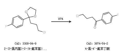 1.通過(guò)2-(3-氯丙基)-2-(4-氟苯基)-1,3-二氧戊烷合成4-氯-4''-氟苯丁酮,收率約87%;