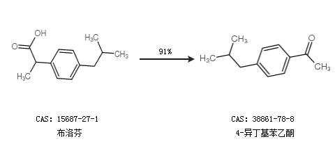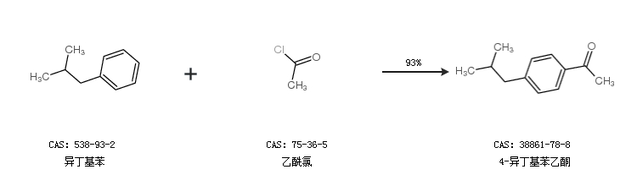1.通過異丁基苯和乙酰氯合成4-異丁基苯乙酮,收率約93%;