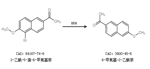 2.通過2-乙酰-5-溴-6-甲氧基萘合成6-甲氧基-2-乙酰萘,收率約86%;