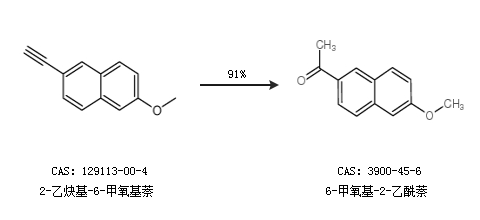 1.通過2-乙炔基-6-甲氧基萘合成6-甲氧基-2-乙酰萘,收率約91%;