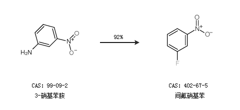 1.通過3-硝基苯胺合成間氟硝基苯,收率約92%;
