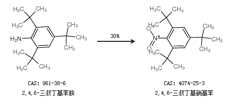 2.通過2,4,6-三叔丁基苯胺合成2,4,6-三叔丁基硝基苯,收率約30%;