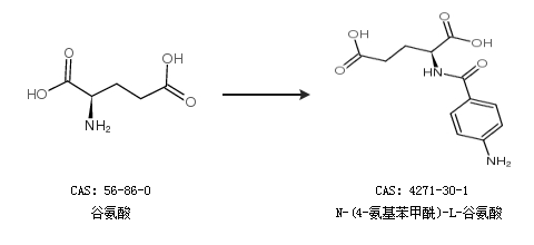中文別名 N-對(duì)氨基苯甲酰-L-谷氨酸;對(duì)氨基苯甲酰谷氨酸;N-(4-氨基甲酰)-L-谷氨酸;N-(對(duì)氨基苯甲酰)-L-谷氨酸;對(duì)氨基苯甲酰基麩質(zhì)酸;N-(4-氨基甲酰)-L-谷氨酸;