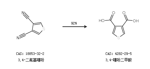 1.通過3,4-二氰基噻吩合成3,4-噻吩二甲酸,收率約92%;