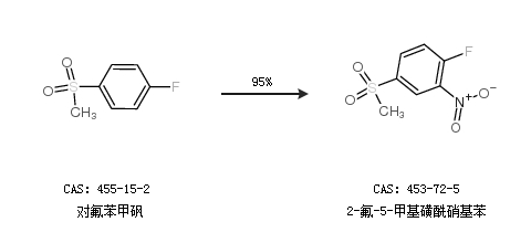 1.通過對氟苯甲砜合成2-氟-5-甲基磺酰硝基苯,收率約95%;