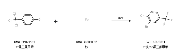 2.通過4-氯三氯甲苯和鐵合成3-溴-4-氯三氟甲苯,收率約82%;