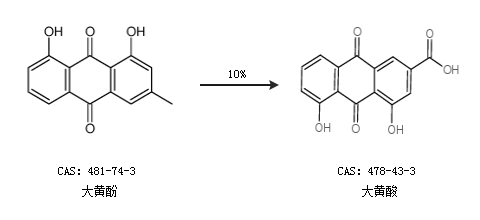 1.通過大黃酚合成大黃酸,收率約10%;