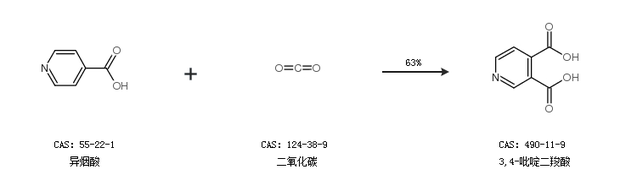 1.通過(guò)二氧化碳合成3,4-吡啶二羧酸,收率約73%;