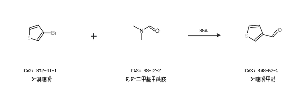 2.通過3-溴噻吩和N,N-二甲基甲酰胺合成3-噻吩甲醛,收率約85%;
