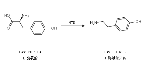 1.通過L-酪氨酸合成4-羥基苯乙胺,收率約97%;