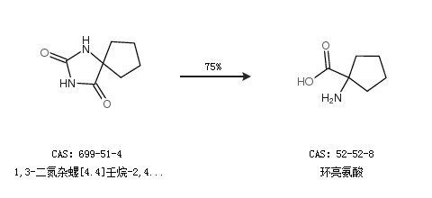 1.通過1,3-二氮雜螺[4.4]壬烷-2,4-二酮合成環(huán)亮氨酸,收率約75%;