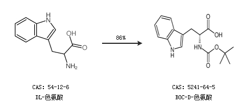 2.通過DL-色氨酸合成BOC-D-色氨酸,收率約86%;