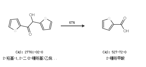1.通過2-羥基-1,2-二(2-噻吩基)乙烷-1-酮合成2-噻吩甲酸,收率約67%;