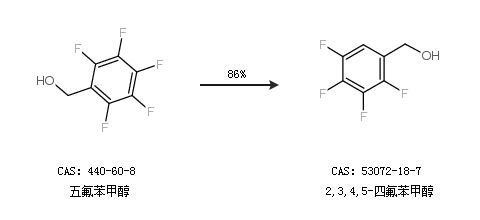 1.通過五氟苯甲醇合成2,3,4,5-四氟苯甲醇,收率約86%;