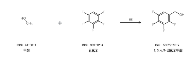 2.通過甲醇和五氟苯合成2,3,4,5-四氟苯甲醇,收率約8%;