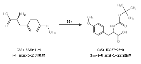 2.通過4-甲氧基-L-苯丙氨酸合成Boc-4-甲氧基-L-苯丙氨酸,收率約88%;