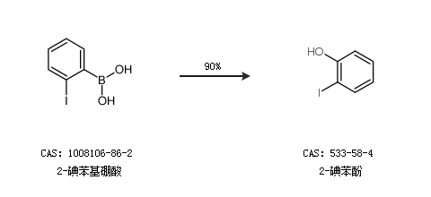 1.通過(guò)2-碘苯基硼酸合成2-碘苯酚,收率約90%;