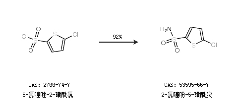 1.通過5-氯噻唑-2-磺酰氯合成2-氯噻吩-5-磺酰胺,收率約92%;
