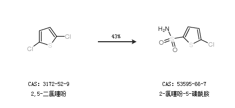 2.通過2,5-二氯噻吩合成2-氯噻吩-5-磺酰胺,收率約43%;