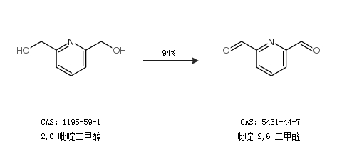 1.通過2,6-吡啶二甲醇合成吡啶-2,6-二甲醛,收率約94%;