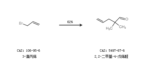 2.通過3-溴丙烯合成2,2-二甲基-4-戊烯醛,收率約62%;