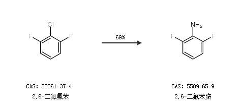 2.通過2,6-二氟氯苯合成2,6-二氟苯胺,收率約69%;