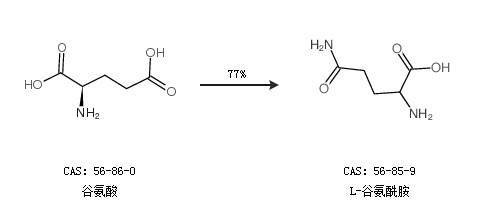 2.通過(guò)谷氨酸合成L-谷氨酰胺,收率約77%;