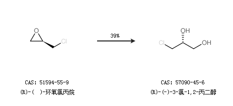 2.通過(R)-(?)-環(huán)氧氯丙烷合成(R)-(-)-3-氯-1,2-丙二醇,收率約39%;