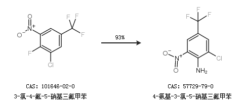 1.通過3-氯-4-氟-5-硝基三氟甲苯合成4-氨基-3-氯-5-硝基三氟甲苯,收率約93%;