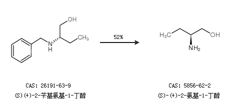 2.通過(guò)(S)(+)-2-芐基氨基-1-丁醇合成(S)-(+)-2-氨基-1-丁醇,收率約52%;