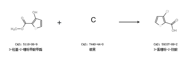 2.通過3-羥基-2-噻吩甲酸甲酯和碳黑合成3-氯噻吩-2-羧酸