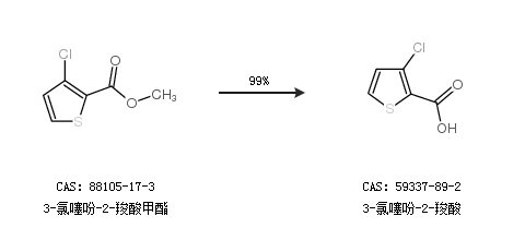 1.通過3-氯噻吩-2-羧酸甲酯合成3-氯噻吩-2-羧酸,收率約99%;