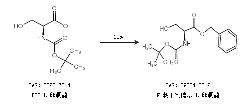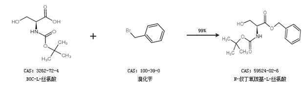 1.通過BOC-L-絲氨酸和溴化芐合成N-叔丁氧羰基-L-絲氨酸,收率約99%;