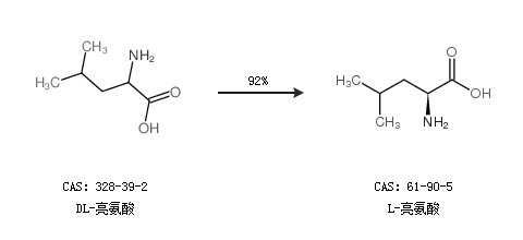 1.通過(guò)DL-亮氨酸合成L-亮氨酸,收率約92%;