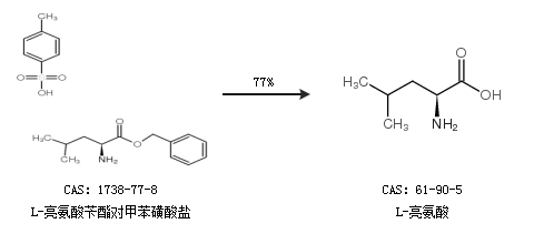 2.通過(guò)L-亮氨酸芐酯對(duì)甲苯磺酸鹽合成L-亮氨酸,收率約77%;