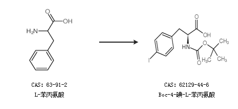 2.通過對(duì)碘溴芐合成Boc-4-碘-L-苯丙氨酸