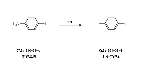 1.通過(guò)對(duì)碘苯胺合成1,4-二碘苯,收率約86%;