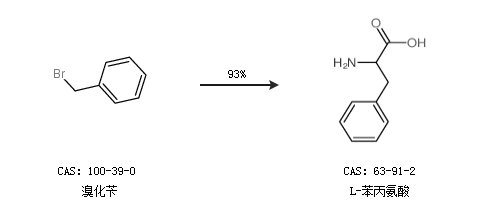 2.通過(guò)溴化芐合成L-苯丙氨酸,收率約93%;