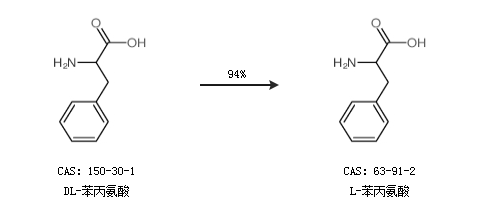 1.通過(guò)DL-苯丙氨酸合成L-苯丙氨酸,收率約94%;